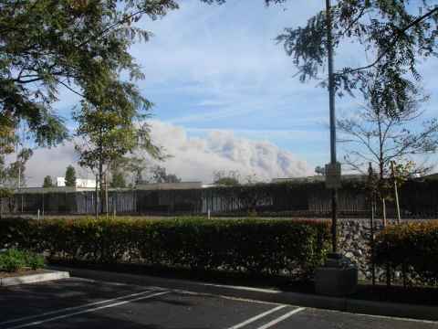 The two other pictures are taken from the intersection of Fwy 405 and Irvine Center Drive, about a kilometer from Interchange's offices, and from just inland of Laguna Beach, looking northeast toward the fire.