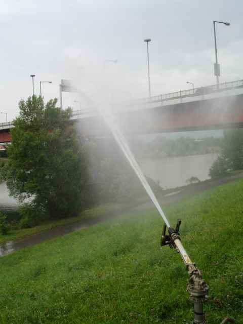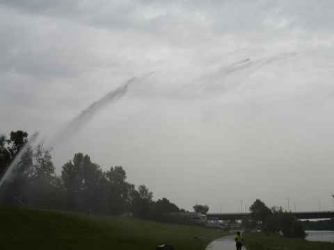 The island has these insanely powerful sprinklers placed along it that drenches anything within a semicircular area in front of it.