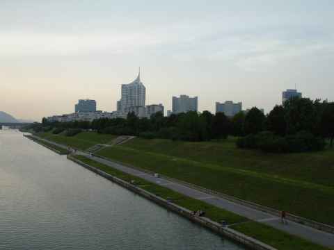 The Donauinsel is a 20 kilometer long and about a hundred meters wide island that divides the Danube river as it passes through Vienna. On one side of the island is the Danube river where big ships go, and on the other side is the New Danube river, where small boats, swimmers, etc. go. The "Old Danube" isn't a river at all anymore - it is a lake that was formed when the riverbed of the Danube river was straightened out as it passes through Vienna. The leftover U of the river became the Old Danube.