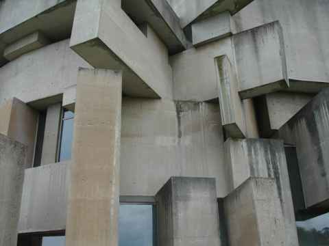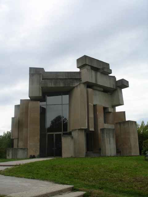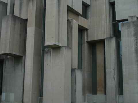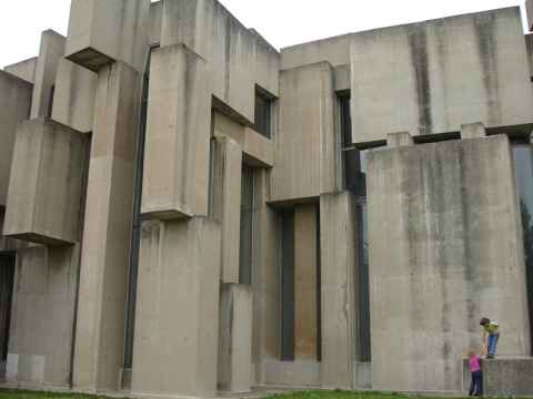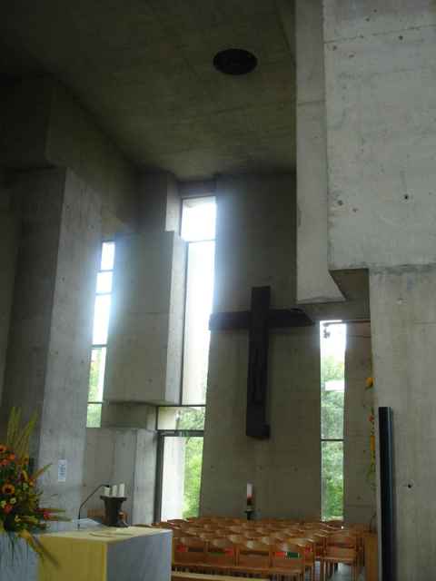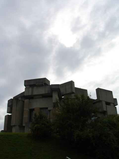 At the top of St. Georgenberg[a] in the southwest of Vienna sits the Church of the Holy Trinity, also known as the Wotruba Church[b]. At first it looks like the church of Robot Jesus.