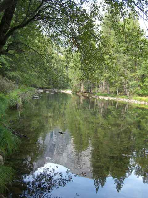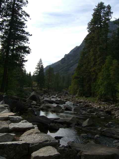 All streams in Yosemite are fed by snowmelt from the mountains. Since I'm visiting in September, when the spring floods are over and there hasn't come any more snow, the streams are near empty.