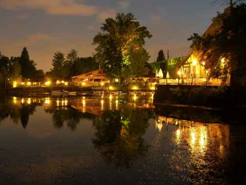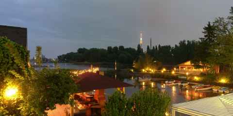 La Creperie[a] is a restaurant located near the north-west end of the Old Danube lake. I have no idea what the food is like (French?), but the restaurant sure makes a good subject for nighttime photography.