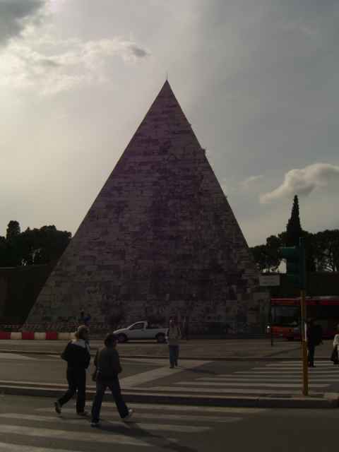 This Egyptian-influenced piece of architecture[a] was built during the first century B.C, in the twilight years of the Roman republic. It holds the ashes of Caius Cestius, Praetor, Tribune and Septemvirate of the Epulos.