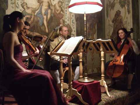 Of course, the Mozart Ensemble doesn't accept just anyone with a violin. Each member of the quartet has a musical résumé that would leave scorch marks on the table.