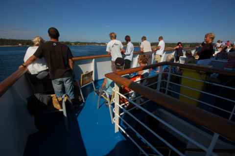 Now, no picture sums up the ferry trip as good as this one. I saw people - including senior citizens - carting and carrying four, five, six, seven of these boxes of beer. The tax free shop even had little baggage carts one could borrow to haul more.