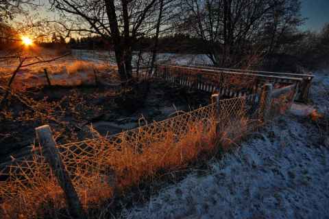 A thin layer of snow covers Järvafältet. The cold was brutal, but the sunset beautiful. When the temperature drops to -10C or below, a lot of easy things become surprisingly hard. Thankfully, today's batteries don't discharge as fast when cold as the batteries of ten years ago. (I remember having to carry my compact point and shoot in the inner pocket of the inner jacket to keep it operational through the day.) Since even an entry-level camera such as the Nikon D40 I use now appears immune to cold, save for a slowly updating LCD, there is only one thing left that can break: The photographer.