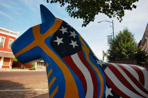 The Swedish town.[a] Well, almost. It's a standard American small town with Swedish heritage. Driving there you'll cross Falun Road, as well as Smolan (Småland?) Road, but obviously the Swedish heritage has been eroded over the past 150 or so years.