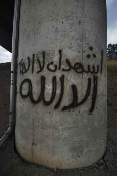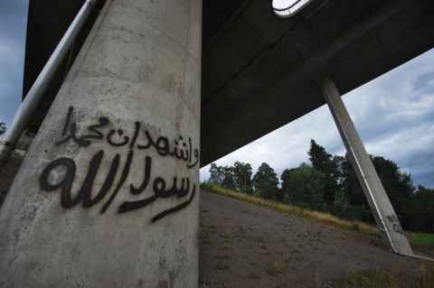 The first time I see some Arabic graffiti in Sweden. (To be nitpicky, it is only in the Arabic alphabet. For all I know I might be Farsi or any other language customarily written with that alphabet.) I have no idea what it means - translations are welcome. I don't even know how to put the text into Google translate.