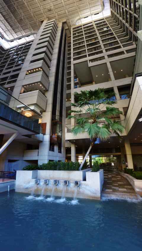 The atrium of the Hyatt Regency hotel in San Antonio. When going from the Alamo to the river walk, the path goes through this open space.