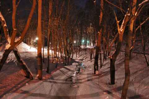 Speaking of water - at this time of year most of it is frozen and not where it should be (that is, on a mountain or in a lake or sea). Piles like this are bulldozed up and then taken by truck to the water to be dumped. The upside is that the whole city doesn't suffer some kind of snow-induced traffic aneurysm. The downside is that the snow goes into the water without passing any water treatment plant, which is the normal procedure, taking with it dirt, oil and other pollutants that one finds on city streets.