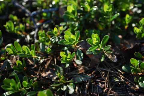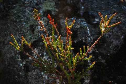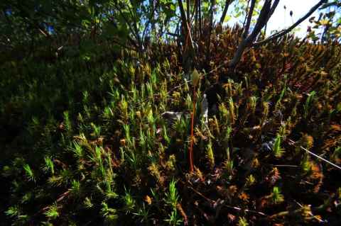 As before, I started out on the "baby stroller hike" and then turned east to cross the burnt area. Unlike the last time I went to Stensjön, I didn't have to move through knee-deep snow, and I had no problems reaching the north-east corner of the lake. The hopes I expressed about the flowering of the burnt area back in March, however, turned out to be wrong. The ground was covered in moss with very few colorful things. Some small flowers could be seen, and I spent a disproportionate time trying to photograph them, fighting the narrow depth of field of the close-up lens.