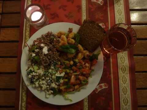 The rest of the menu is the standard café fare, with the exception of the salad bar. You get to pick four salads from a set of about twenty. All are very tasty.