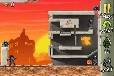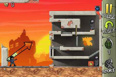 The premise of Fragger is very easy: You have a bunch of enemies on the screen, and your job is to throw grenades at them to blow them up or knock them off the screen. This is complicated by destructible partitions and the need to get the grenade throw just right. When you do get it right, however, the result is a heavy explosion with body parts flying over the screen. While the violence is cartoonish, it really has no right being this much fun.