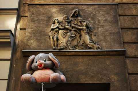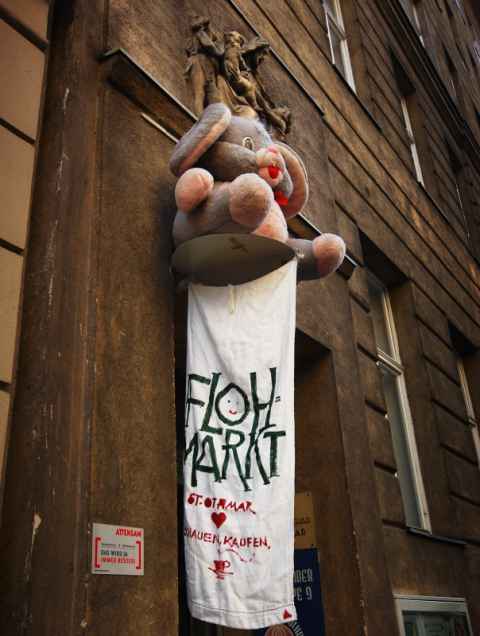 Saint Othmar's flea market was right opposite Kunst Haus Wien[a], and was announced with this giant fluffy bunny.