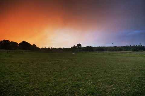 While walking toward the hill from which I planned to shoot Kista Science Tower from a distance I noticed a nice raincloud in the distance. When the sunset peeked out from underneath it turned from nice to beautiful. I started shooting it with my 55-200 tele, then switched to the 18-55 wide angle lens and finally ended up using the 10-20mm ultrawide. Through all of this I failed to draw the obvious conclusion about what was about to happen: If a rainstorm is getting bigger, it is most likely heading towards you and you are about to get soaked.