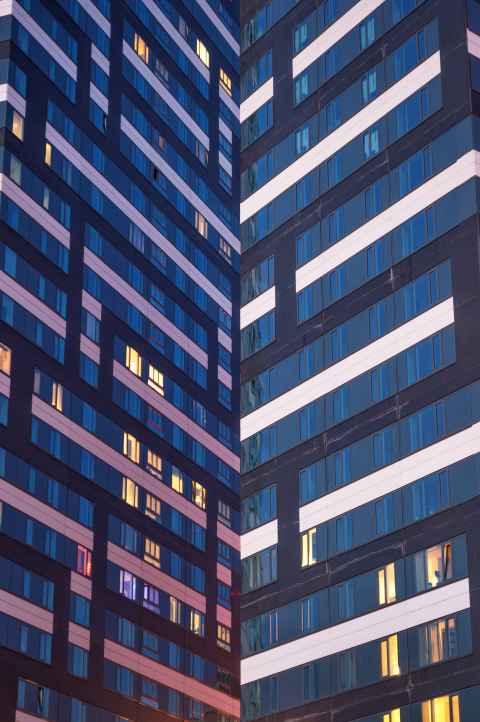 When approaching Kista from Husby, the twin towers of Kista Torn mesh together in an interesting zig-zag pattern.