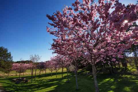 In Kista, down by the tiny stream Igelbäcken, twelve cherry trees stand in a semicircle around a memorial stone. These symbolize the twelve children from the nearby Kvarnbacka school who died in a bus crash in Norway in 1988. Hiro Kanakura, who was the driving force behind the memorial, describes how the creation of this memorial happened in a comment[a] on KistaChic (in Swedish). I would also recommend reading the last comment Hiro wrote[b].