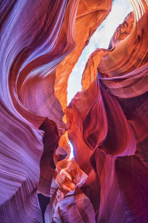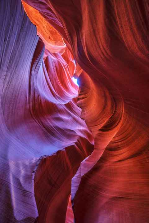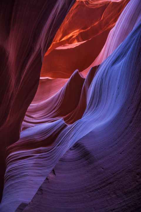 Lower Antelope Canyon is a place that is a textbook example of color science. In particular, how the color temperature ("warm" reds vs "cold" blues) drops as you go from brightly illuminated surfaces to the shadows.