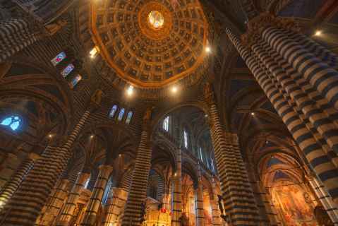 Siena Cathedral, or Metropolitan Cathedral of Saint Mary of the Assumption as its full name is, was built between 1215 and 1263 - which for a cathedral is very fast as these usualy take 100+ years to finish. The city council saw this and saw that it was good. Then the city council decided "to put Siena on the map" and other PR-consulting tropes from the year 1300, and committed to expand it to the largest cathedral in the region. The construction soon turned into a nightmare: the money ran out before even one tenth of the job was done, what was done was of sub-standard quality - and to top it off the plague struck. From the abandoned, half-finished marble walls that today frame a parking lot we learn that municipal politics haven't changed in 700 years.
