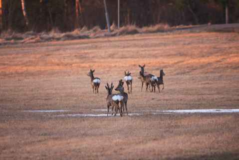 I went to Husby Gård to see if I could photograph some birds or other animals with my Sigma 150-600. None showed up, so I gave up and started going home. Just then a pack of deer thundered past. Cursing, I just about managed to get the camera ready, swing it around, and get some photos of them.