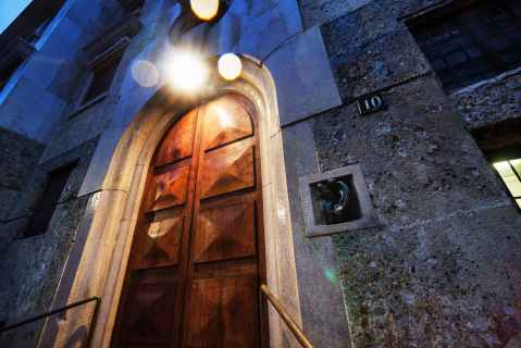 Near the center of Milan, in its Zone of Silence, you can find a building with a very stylish intercom - right next to the entrance is a large bronze ear where guests could announce their arrival. It's Casa Sola-Busca[a], more known as Cà dell'oreggia or House of the Ear. This old-school intercom was in use until it became famous enough that random passers-by would shout into it and annoy the tenants.