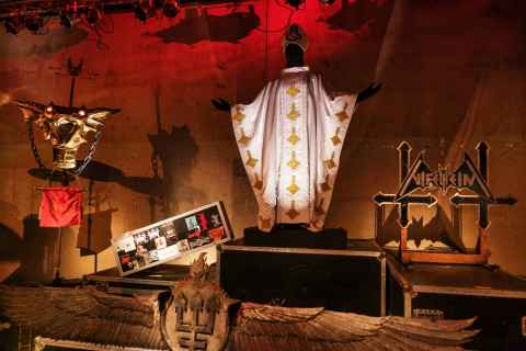 When it was time to create a live show with Nifelheim, the Gustafsson brothers called for artifacts that would make people feel uncomfortable. When an acquaintance in Uddevalla offered them the a baby's casket, they were very pleased. "A tiny casket is much more unpleasant than a regular one, plus it's easier to ship to gigs. A so-called win-win", says bassist Erik "Tyrant" Gustafsson. The casket has been on stage at almost every Nifelheim gig since the early 00s. All kinds of things have been stored in it over the years, mainly raw meat that has been thrown at the audience.