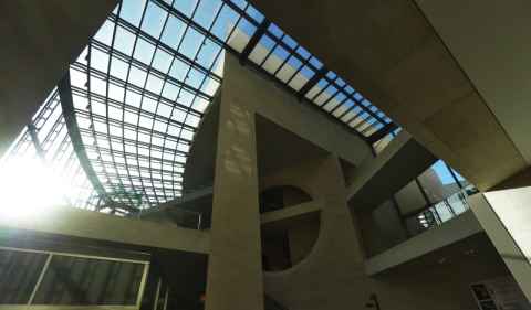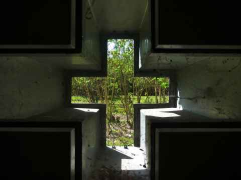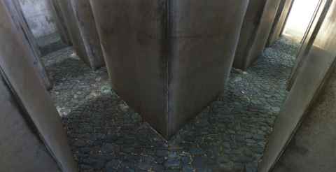 Interrogation by the STASI[a]. An interrogation of a dissident is played back in speakers set in the table. In order to hear, you put your elbows on the speaker plates and your hands over your ears. The sound propagates through your lower arm, making the palm vibrate like speaker membranes; and making you look like a broken person. It is quite ingenious.