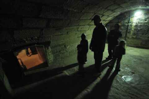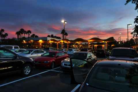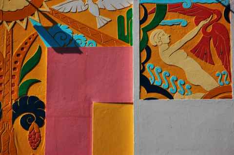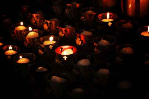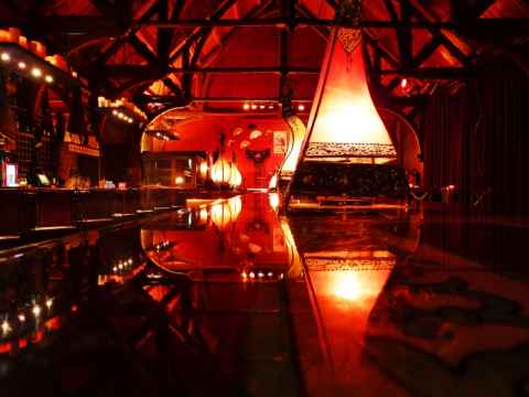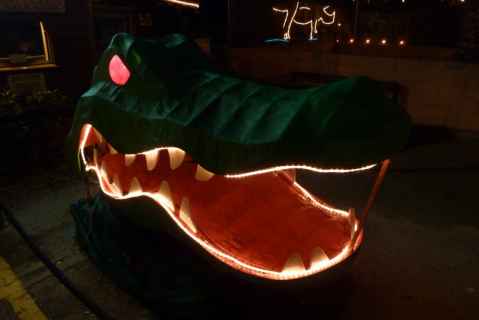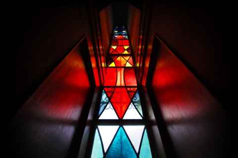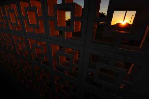 The "Space Mirror"[g] memorial to fallen astronauts. It was dedicated in 1991 and updated as needed since. So far there are 24 names on it. The monument is built from stone slabs sitting on a metal frame, with the plates containing names being thinner and having the letters cut out and covered with a semi-transparent material. The whole structure is lit from behind, projecting the names into the sky.