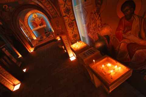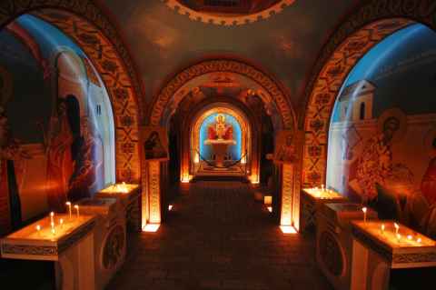 Christ the Pantocrator[a] ("the almighty"), surrounded by words from Revelation 1:8 in Greek.