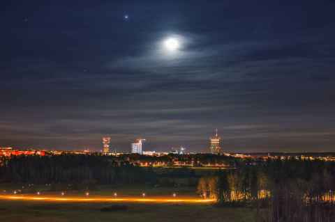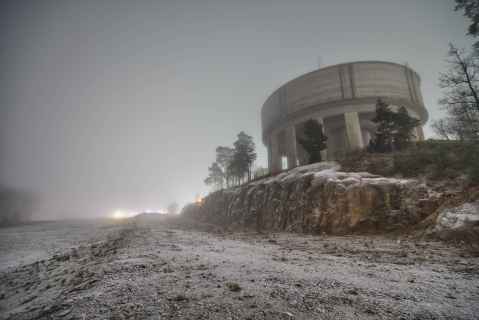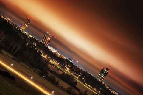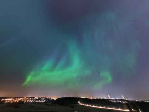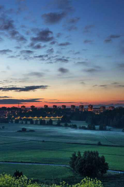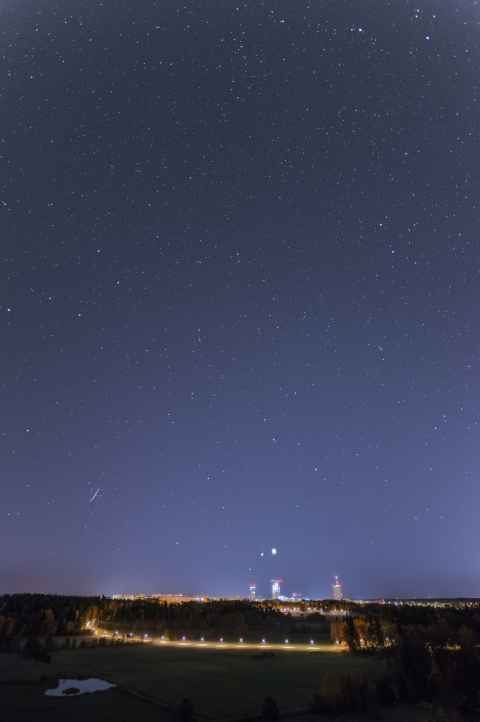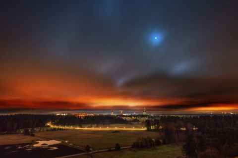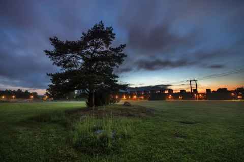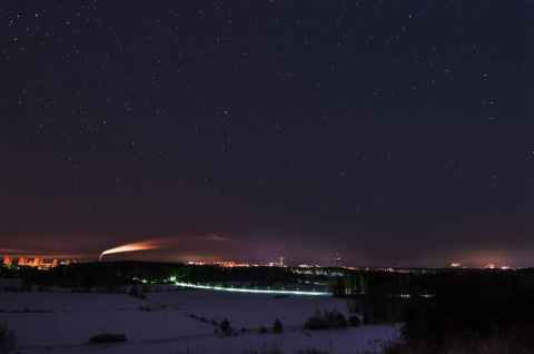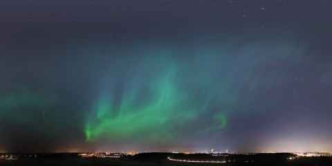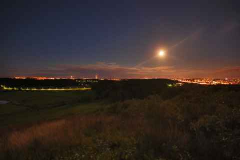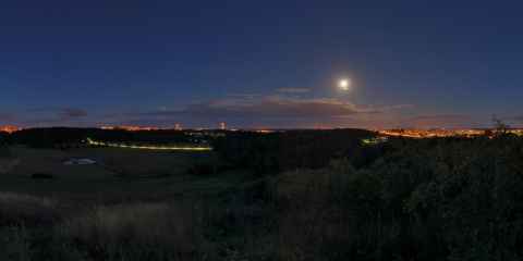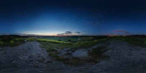 This panorama was shot at about 23:40-23:45, and the middle photo (of three) was taken just as the sun hit the lowest point it will ever hit during the year from this location, -54°06'17", which can be compared with the lowest point it hits during the night following the longest day, -7°14'07". The difference is close to exactly twice Earth's axial tilt - with some allowance for the change in distance to the sun. Ignoring the change in distance, it would be exactly twice, as it is the tilt that causes the difference. In other words, this is as dark as it gets: None more black.