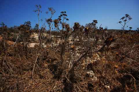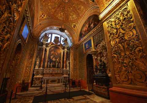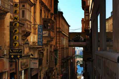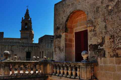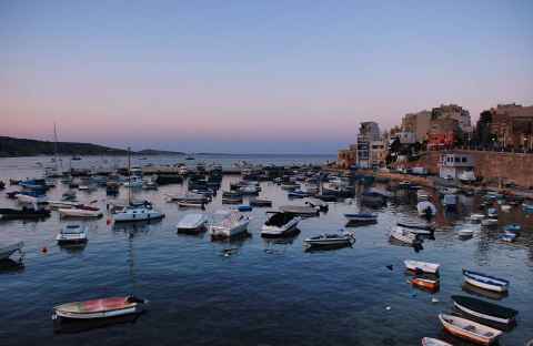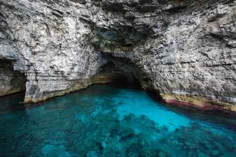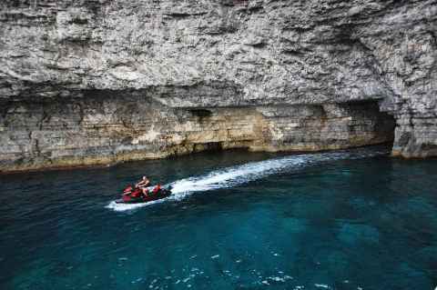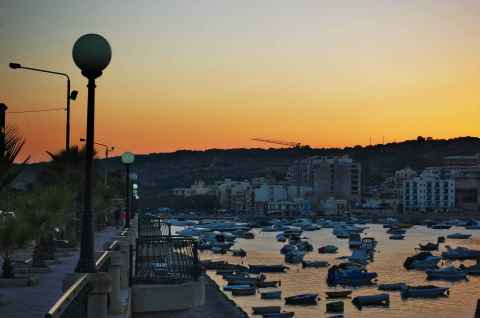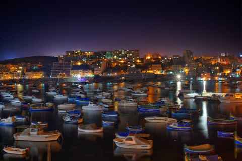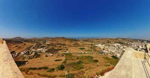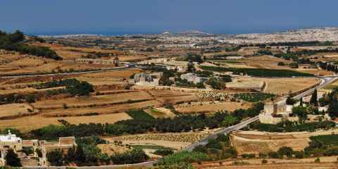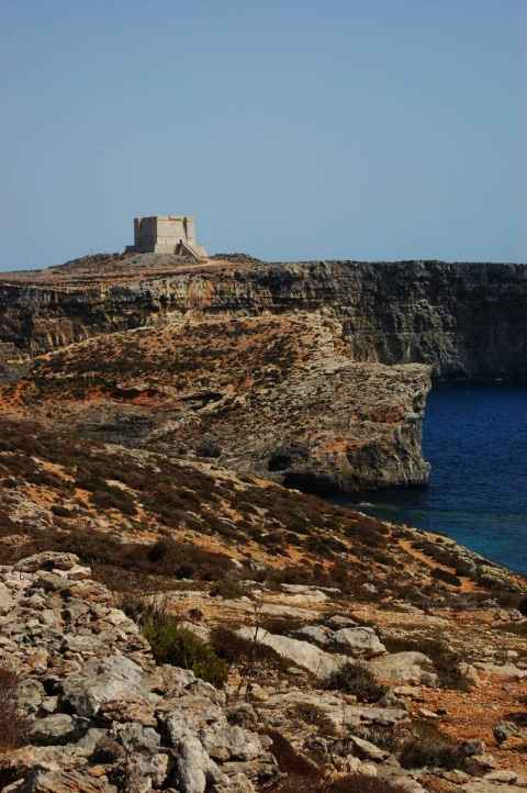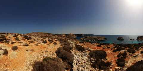 Gozo is in the distance to the left. The island in the middle is Comino, with the Blue Lagoon just about where the boat is seen. If the photo extended a bit more to the right, the northernmost tip of Malta would be visible.