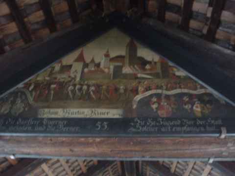 This gate is at the north-east corner of the old city wall and was a comparatively late addition to the town. On the wall of the gate arch is a condensed history of the last 1000 years of the town, marking important years.